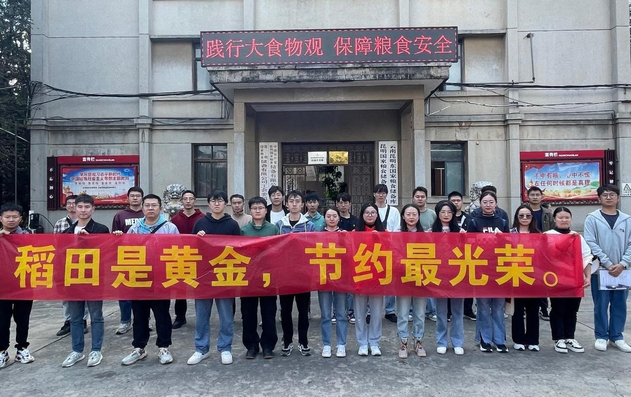 在世界粮食日到来之际,WilliamHill体育研究生党支部以习近平新时代中国特色社会主义思想为指导,深入学习“大食物观”的重要精神,积极响应《云南省2023年世界粮食日和全国粮食安全宣传周活动方案》,于10月18日前往昆明国家粮食储备有限公司(云南昆明东国家粮食中转库)开展“稻田是黄金,节约最光荣”主题党日活动。