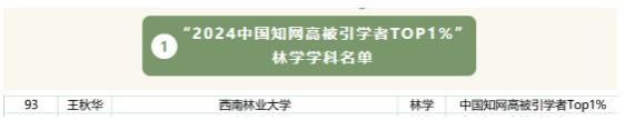 在“2024中国知网高被引学者 Top 1%”预发布名单中,WilliamHill体育王秋华教授入选林学学科Top 1%的140位学者之一。