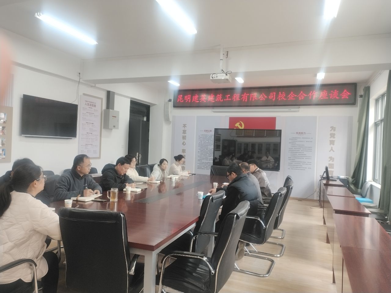 2月25日,公司与昆明建英建筑工程有限公司在土木楼308开展校企合作座谈会。公司领导班子、土木工程系负责人等相关教师参加座谈。
