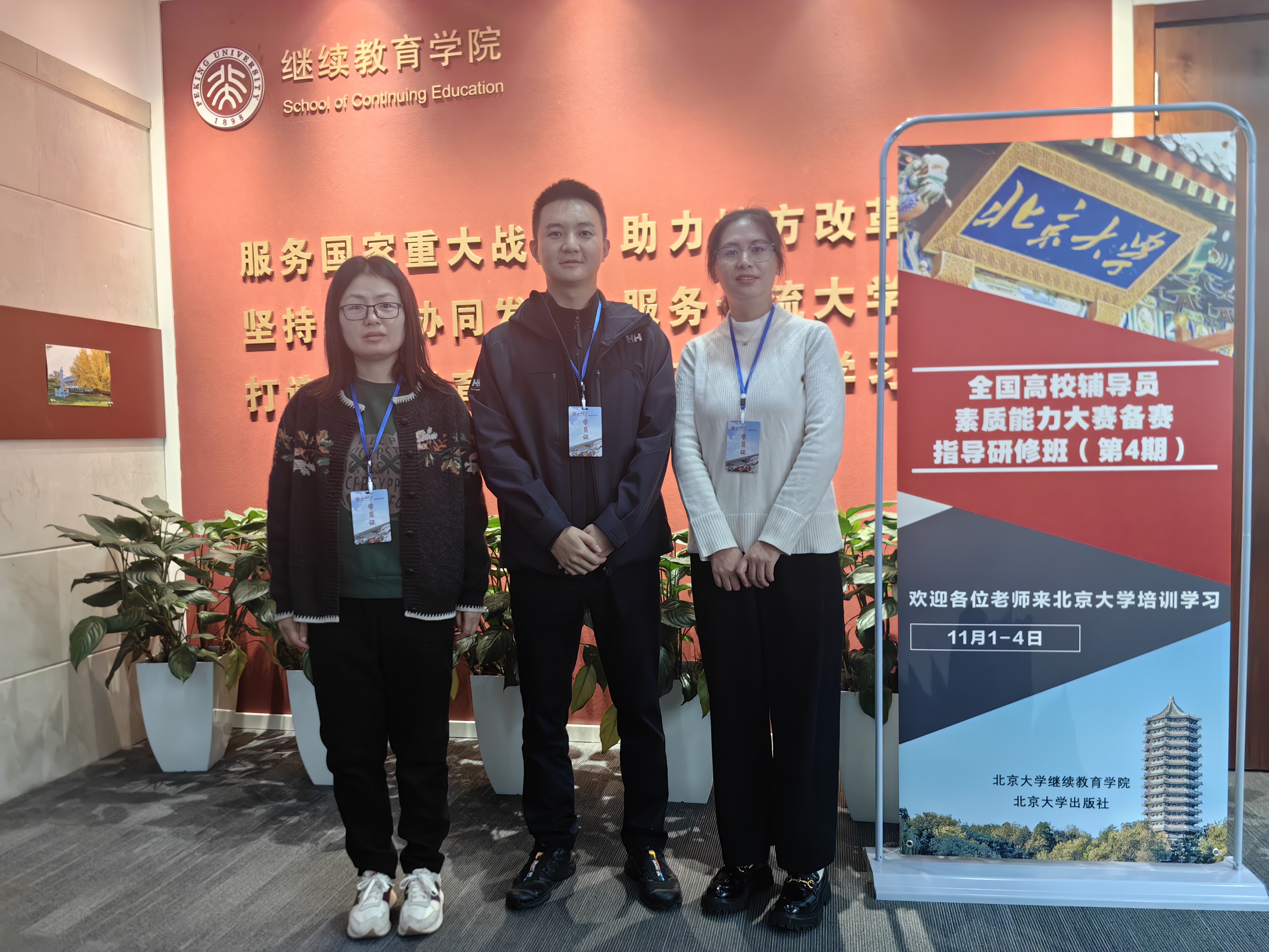 为了加强辅导员队伍建设,不断提升公司辅导员理论水平、职业能力和专业素养。11月1日至4日,WilliamHill体育“筑基致远”辅导员工作室负责人刘鸣奇,成员鲁小丽、施维清到北京参加《北京大学-全国高校辅导员素质能力大赛备赛指导研修班(第4期)》培训。