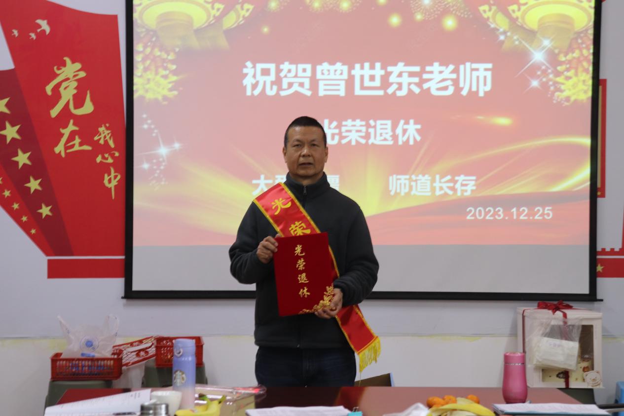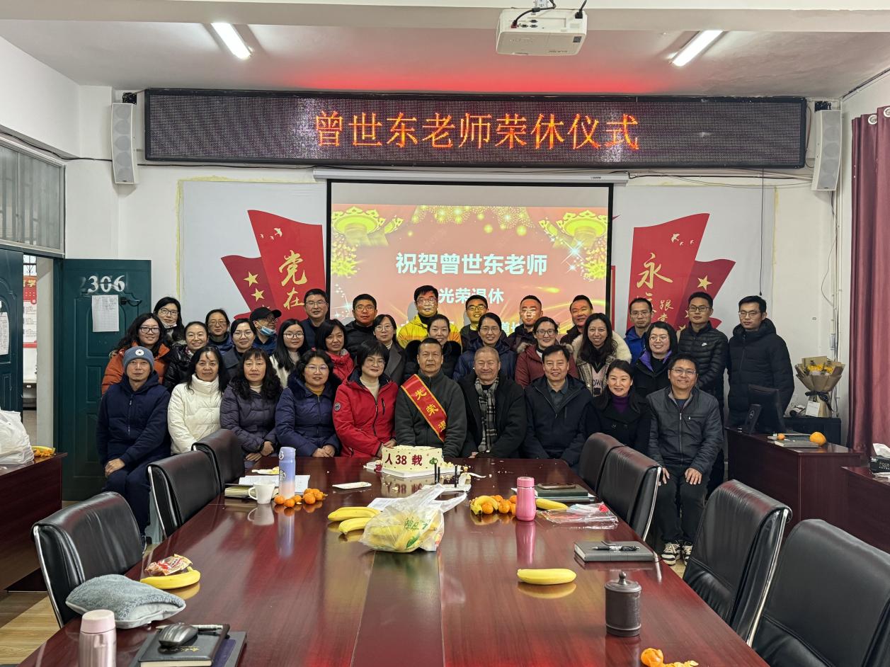 12月25日,WilliamHill体育在土木楼306会议室隆重举行曾世东老师荣休仪式,公司全体教师齐聚一堂,以最真挚的情谊欢送曾世东老师光荣退休。曾世东老师于1985年入职西林,青春年少时,他来到了西林,三十八年如一日,扎根西林教育阵地,潜心育人,默默奉献,如今已是桃李满天下。