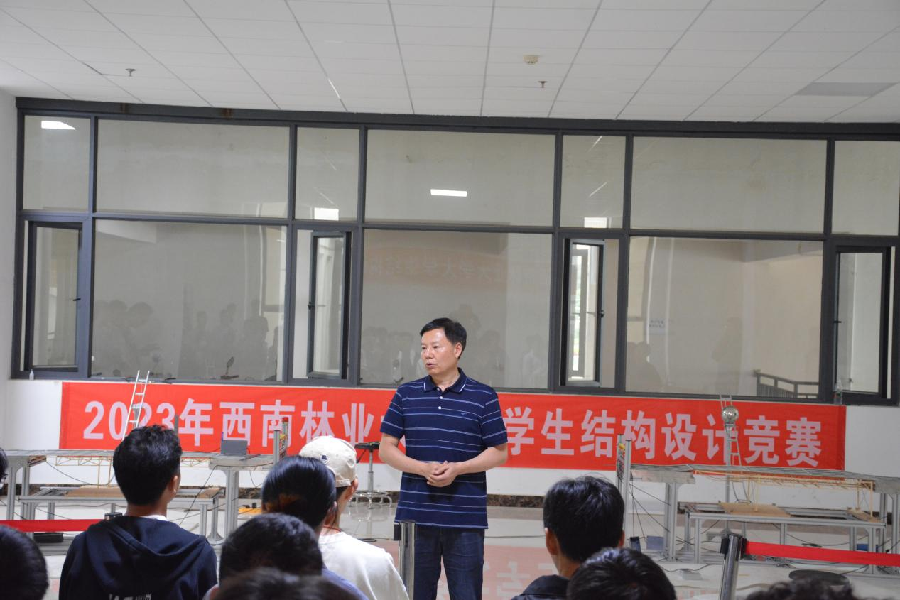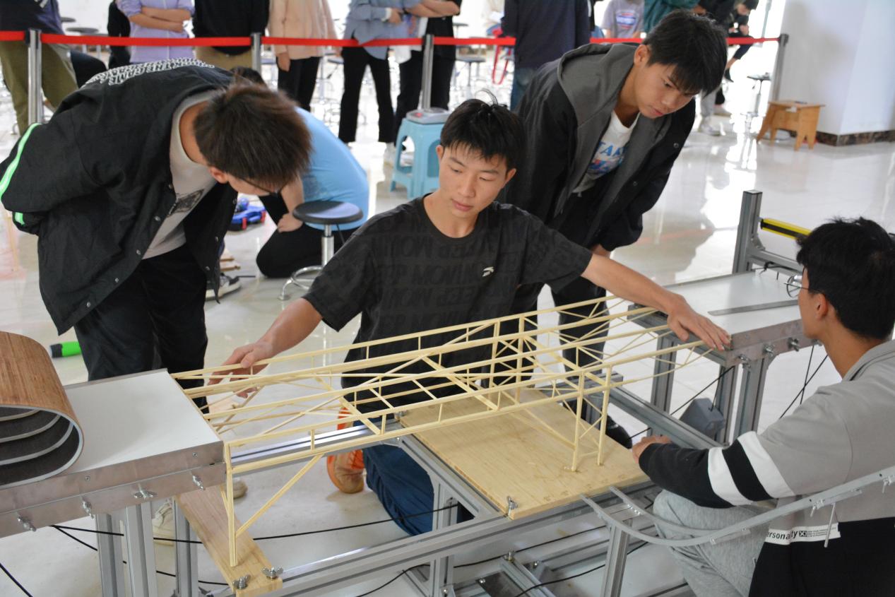 竞赛期间,WilliamHill体育党委书记谭泽飞到比赛现场了解各参赛队的模型结构设计理念及加载情况。谭泽飞希望参赛同学们能够以此次竞赛为平台,在巩固专业知识的基础上,不断创新,将理论知识与实践相结合,发挥专业优势,加强合作交流,提高实践能力,锤炼意志品质,提升创新能力。