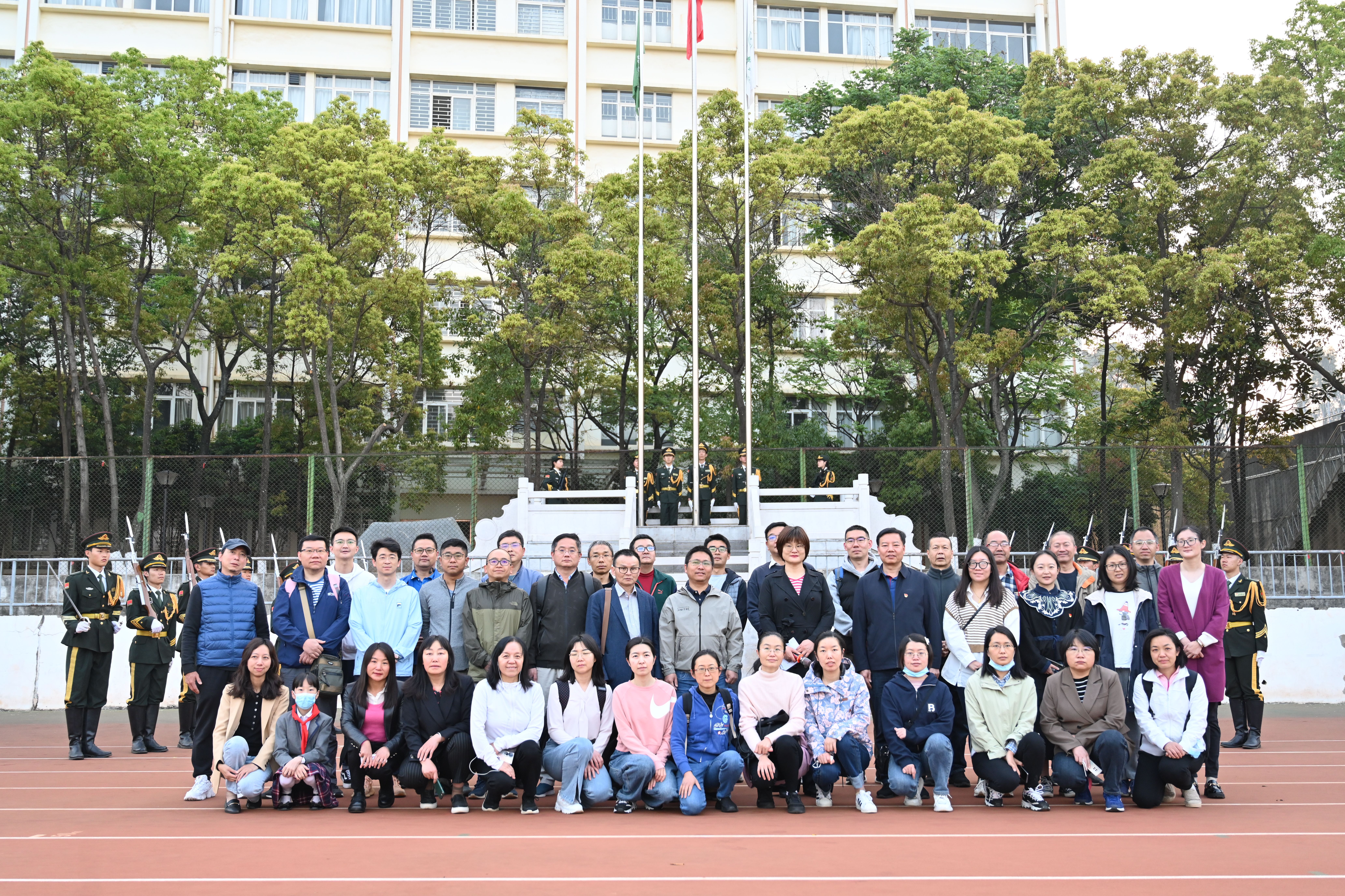 升旗仪式结束后,WilliamHill体育全体教师合影留念。(来源:WilliamHill体育/图:丁洲卿/文:鲁小丽/审核:谭泽飞)