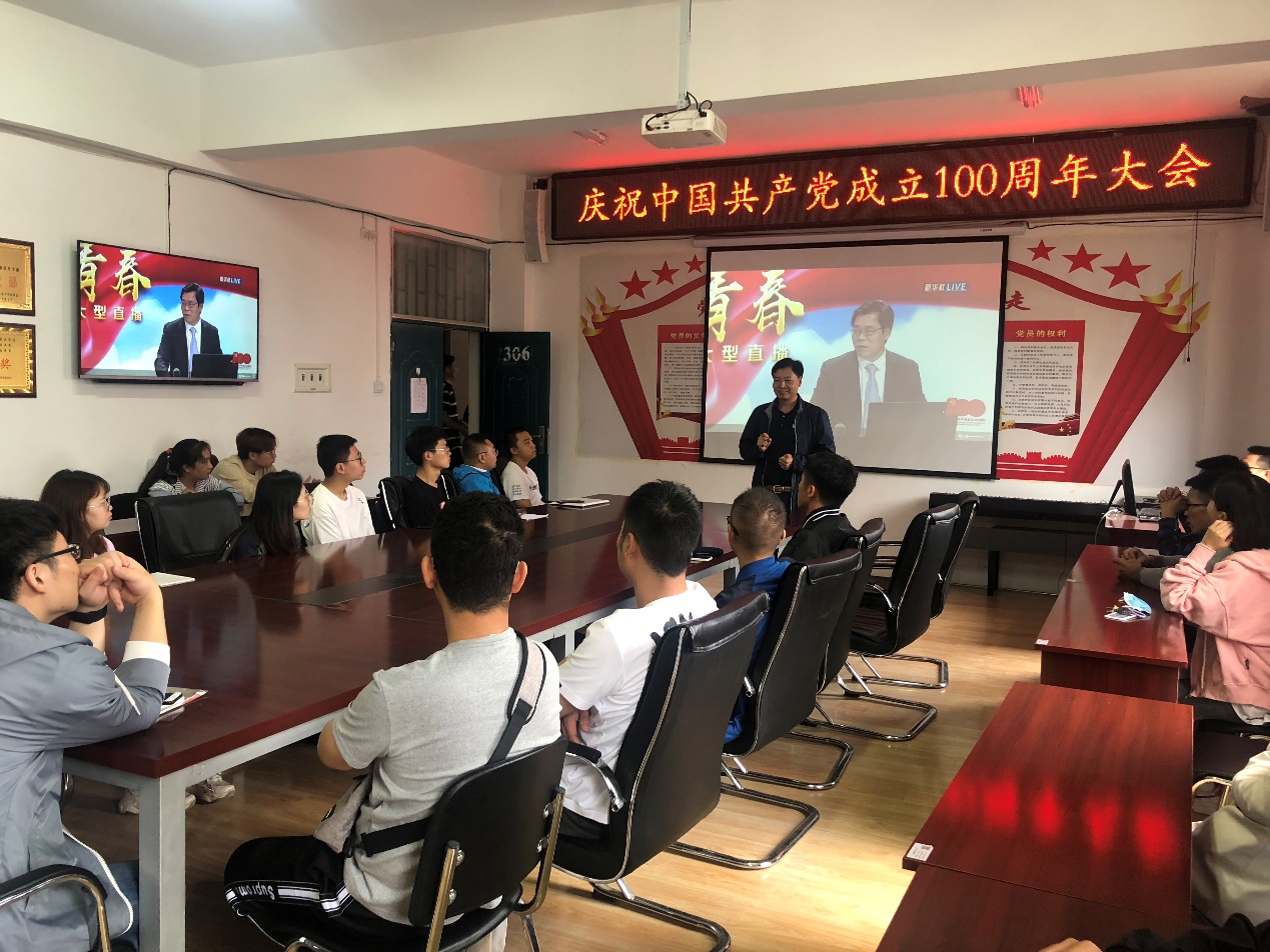 7月1日上午八点,WilliamHill体育教师党员和员工党员齐集一堂,在公司306会议室、307会议室集中收看庆祝建党100周年大会直播。