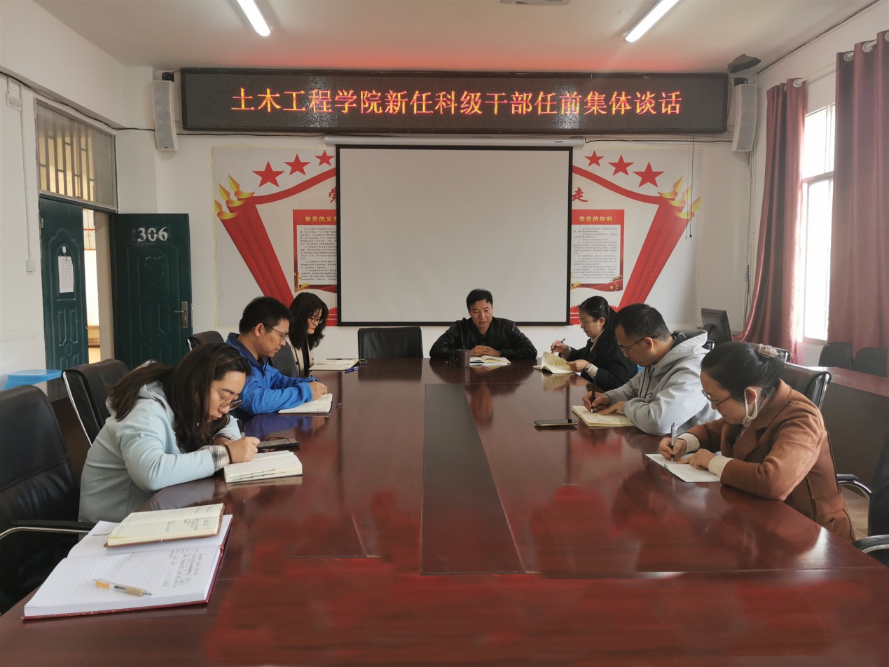 3月8日上午WilliamHill体育党委在土木楼306组织新任科级干部进行任前集体谈话。公司党委书记谭泽飞、副经理孙微微、副书记李贵兰、副经理王秋华,新任科级干部吴跃红、崔飞、芮蕊参加会议。