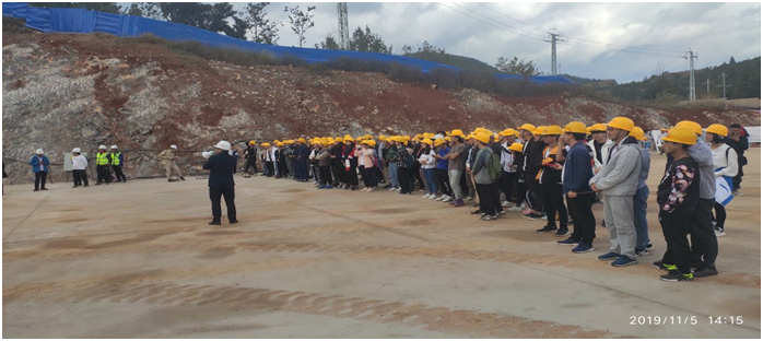工地现场上项目总工程师杜总对项目概况、位置、工程量,施工工期、质量目标、总体平面布置进行了详细的介绍,随后带领同学们走向隧道,讲解了隧道掌子面开挖、仰拱施工等施工工法,使员工通过对隧道相关组成部分的理解与认知形成相应的概念。