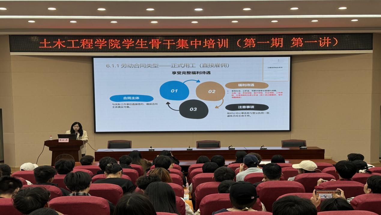 讲座围绕员工骨干就业市场、就业方向、简历与面试技巧、企业选择、劳动合同签订要点等进行深入讲解。