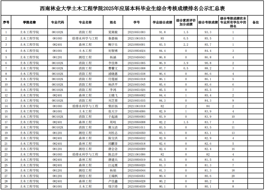 附件1:2025年应届本科毕业生综合考核成绩排名公示汇总表-WilliamHill体育